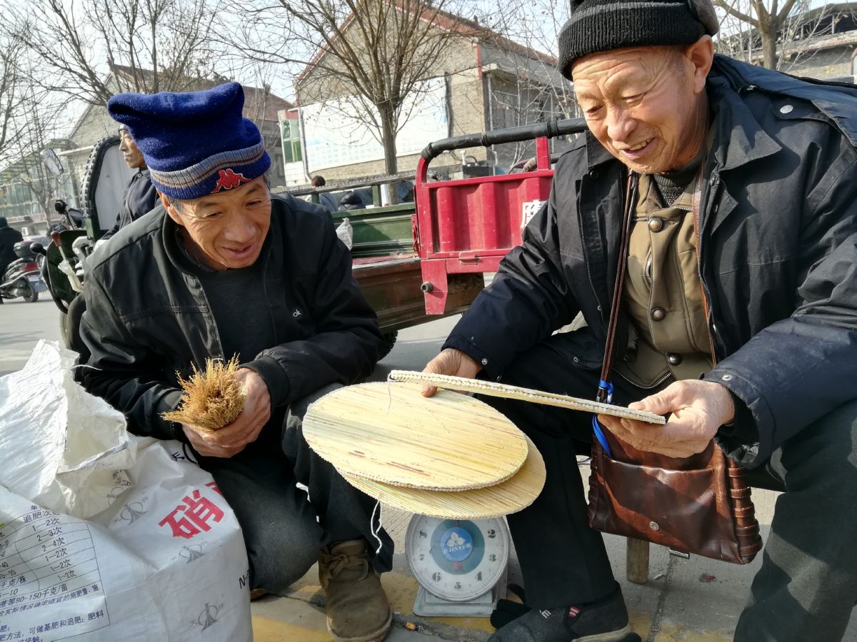 12月21日,垣曲縣墨山底村農(nóng)民龔德勝在市場銷售箅箅和刷子,并與顧客一起交流自己的加工經(jīng)驗。