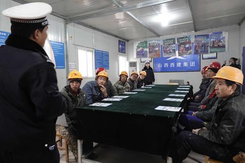 ▲12月23日,新絳縣交警大隊第一宣傳小分隊深入建筑公司駐地,為農民工進行交通安全宣傳。 特約攝影 高新生