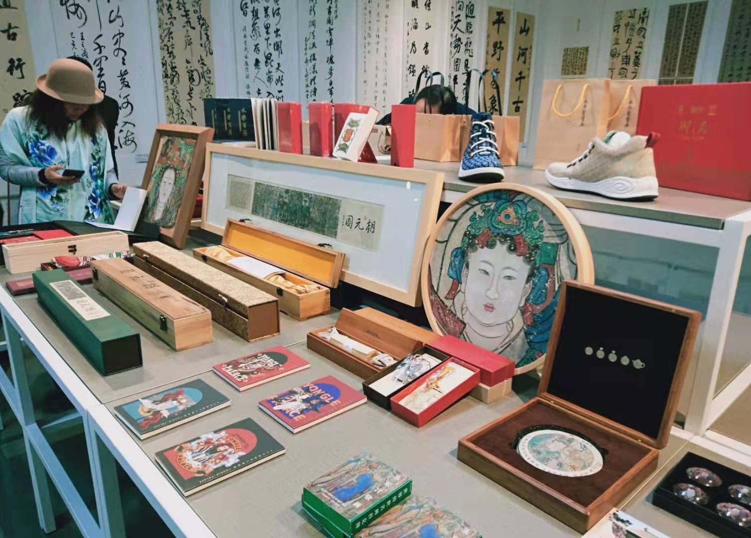 ▲琳瑯滿目的文創(chuàng)產(chǎn)品吸引了大家的眼球 王斌 攝