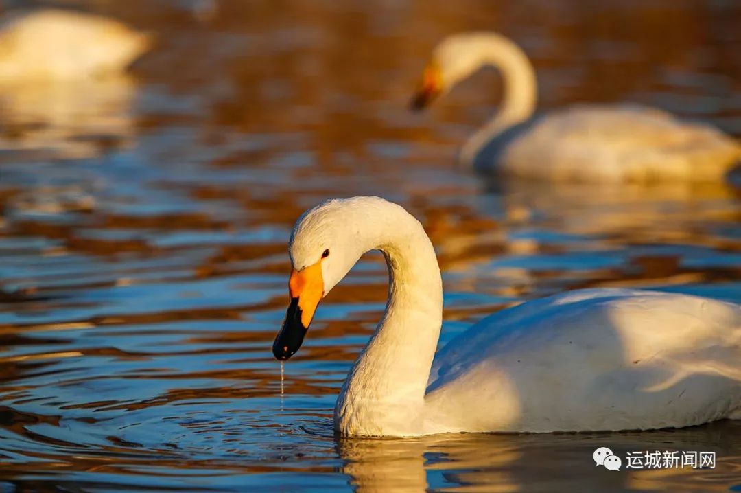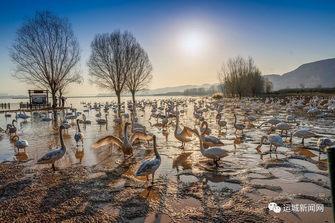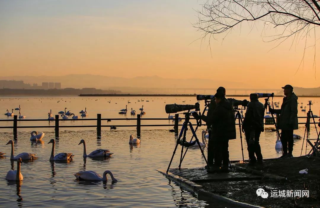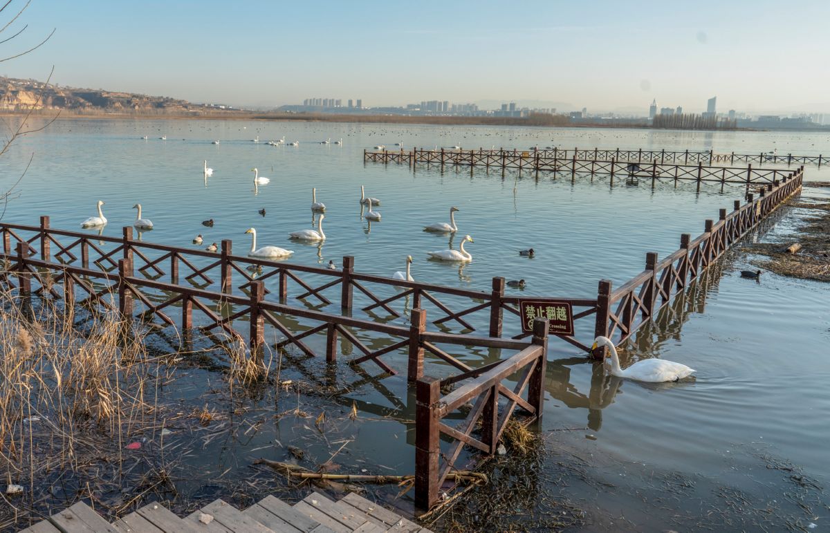 近日,平陸縣三灣村大天鵝景區水位上漲,將原來的觀景臺和部分木棧道淹沒,使得游客與大天鵝的距離更近,更具觀賞性和互動性,吸引了眾多的游客和攝影師前來觀賞拍攝。這是記者近日在該景區拍到的一組照片。 記者 高志勇 金玉敏 攝影報道