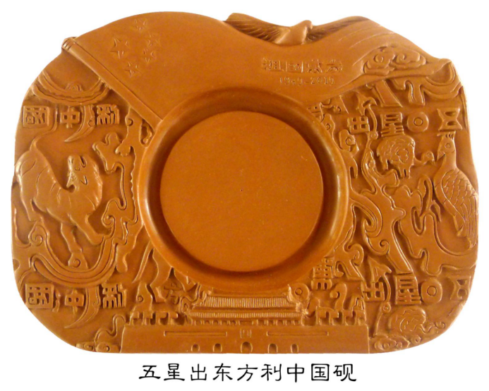 今年,在新中國成立70周年之際,為向新中國70華誕獻禮,藺濤設計制作了“五星出東方利中國硯”“瑞金硯”“鋼鐵長城硯”“盛世中華硯”“中國夢硯”“不忘初心硯”等系列主題硯。