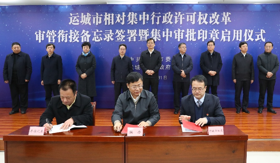 運(yùn)城新聞網(wǎng)訊(記者王文軍)12月31日,我市相對(duì)集中行政許可權(quán)改革審管銜接備忘錄簽署暨集中審批印章啟用儀式在市政務(wù)服務(wù)中心舉行,標(biāo)志著我市“一枚印章管審批”正式啟動(dòng)運(yùn)行。