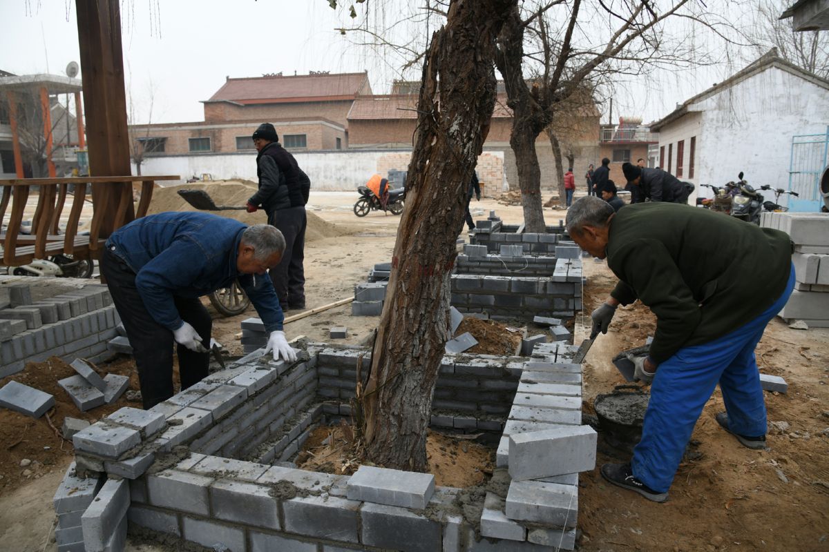 昨日,聞喜縣侯村鄉柴家峪村村民在新時代文明實踐站建設工地施工。