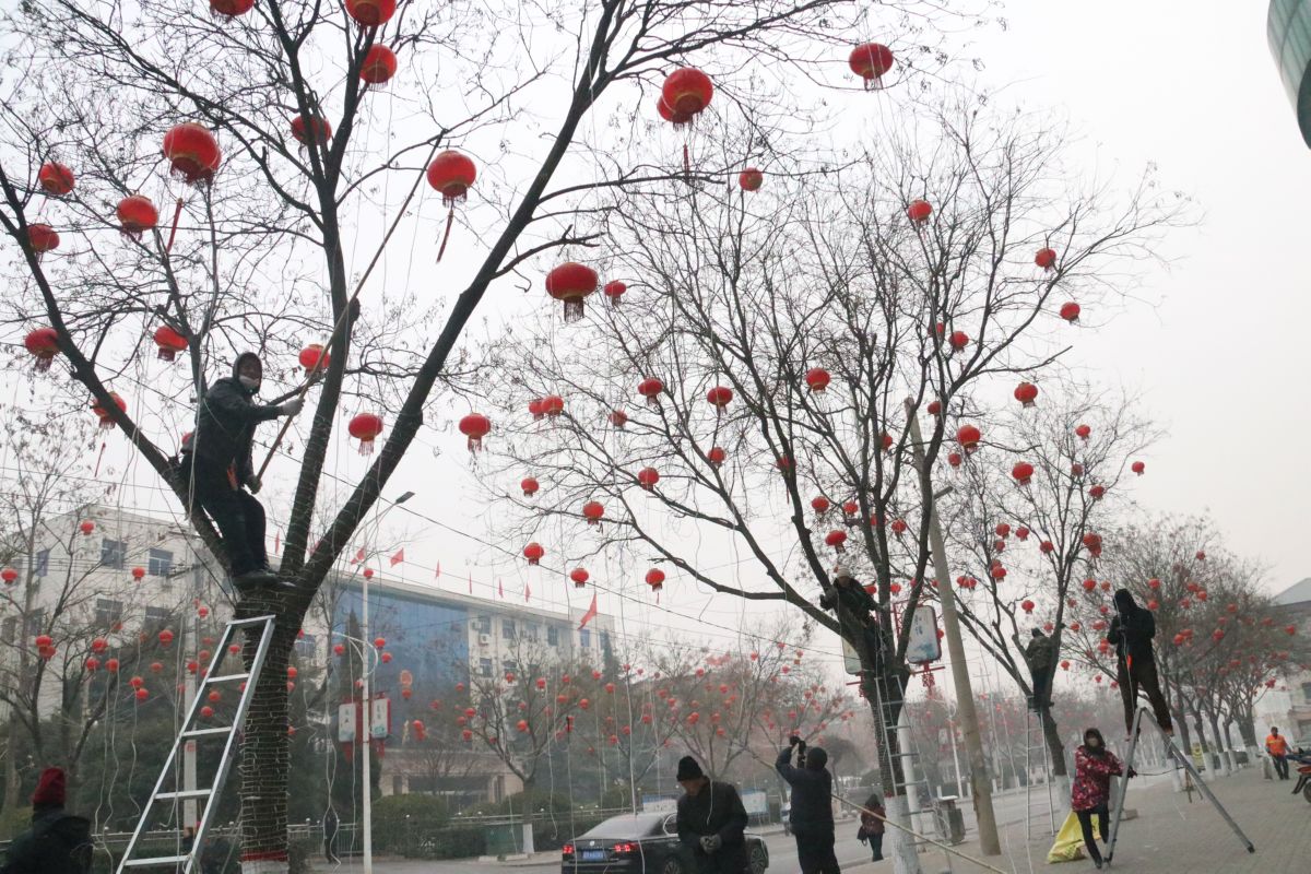 ▲1月5日,聞喜縣城多名師傅正在掛燈籠,裝點縣城。