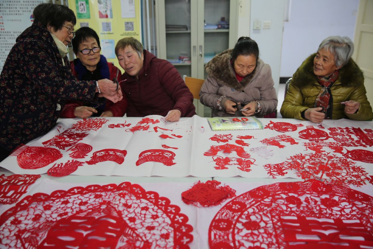 ▲1月7日,在永濟市栲栳鎮(zhèn)文化站,省級非物質(zhì)文化遺產(chǎn)剪紙傳承人張亮亮(左一),在指導(dǎo)學(xué)員剪紙。 特約攝影 薛啟濤