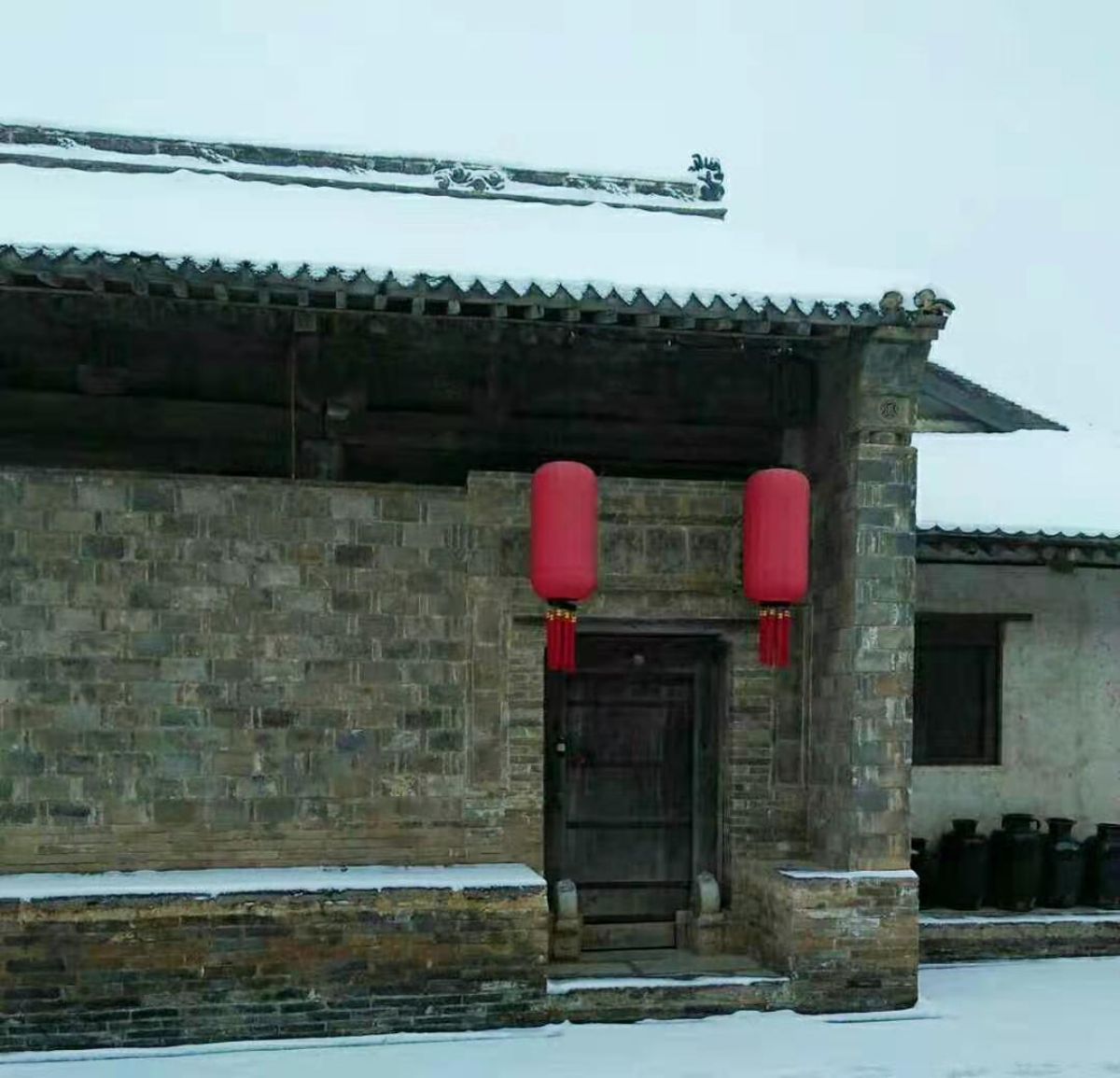 ▲屋門上掛著的紅燈為景區增添了喜慶氛圍 王斌 攝