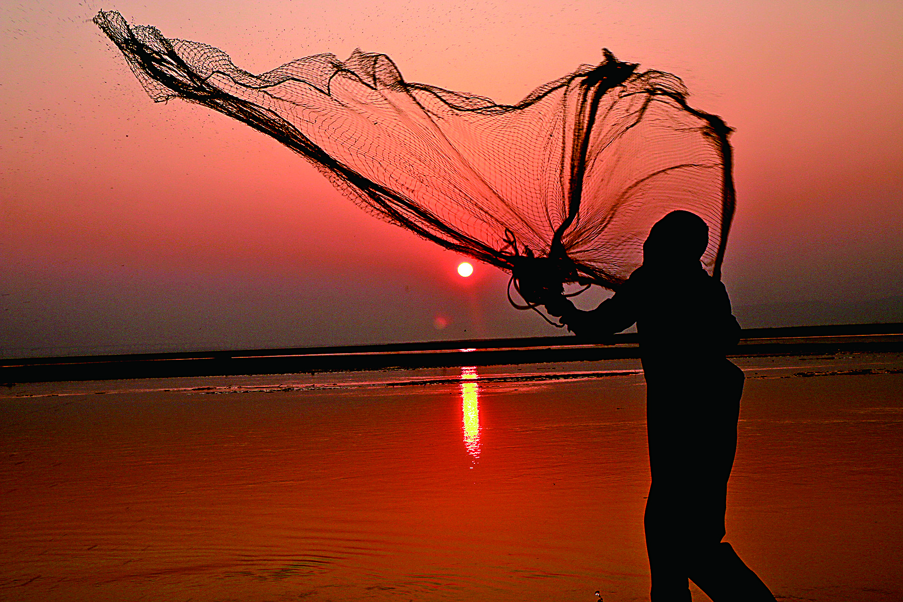 1月12日,臨猗縣潘侯村村民在黃河撒網捕魚。 近年來,依托地理優勢,潘侯村捕撈業逐漸興起,不僅提高了村民生活質量,還增加了收入。特約攝影 崔益民