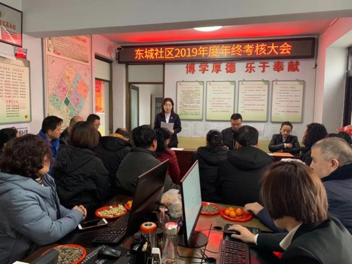 ▲聞喜縣東城社區日前召開2019年年終考核大會,轄區內的30余名居民代表參與測評。