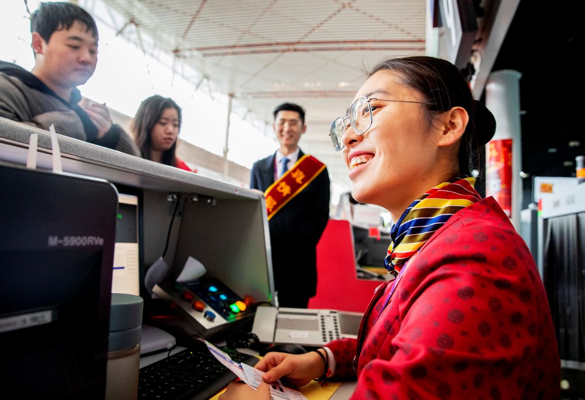 工作人員為乘客辦理手續(xù) 樊朋展 攝