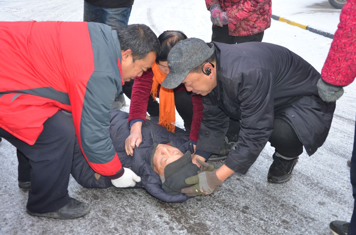當日8時許,萬榮縣裴莊鄉裴莊村村民裴成家外出晨練,當行至裴莊村村門樓附近時,不小心腳下一滑,摔倒在雪地上。路過此地的裴莊村村民劉明杰急忙放下電動車,查看老人傷情;經營化肥的裴玉龍急忙撥打120急救電話;村民裴滿榮開來了自家的電動車……裴明泉、劉明杰、秦耀玲、王榮進等十幾位村民一起把裴成家老人送往醫院。