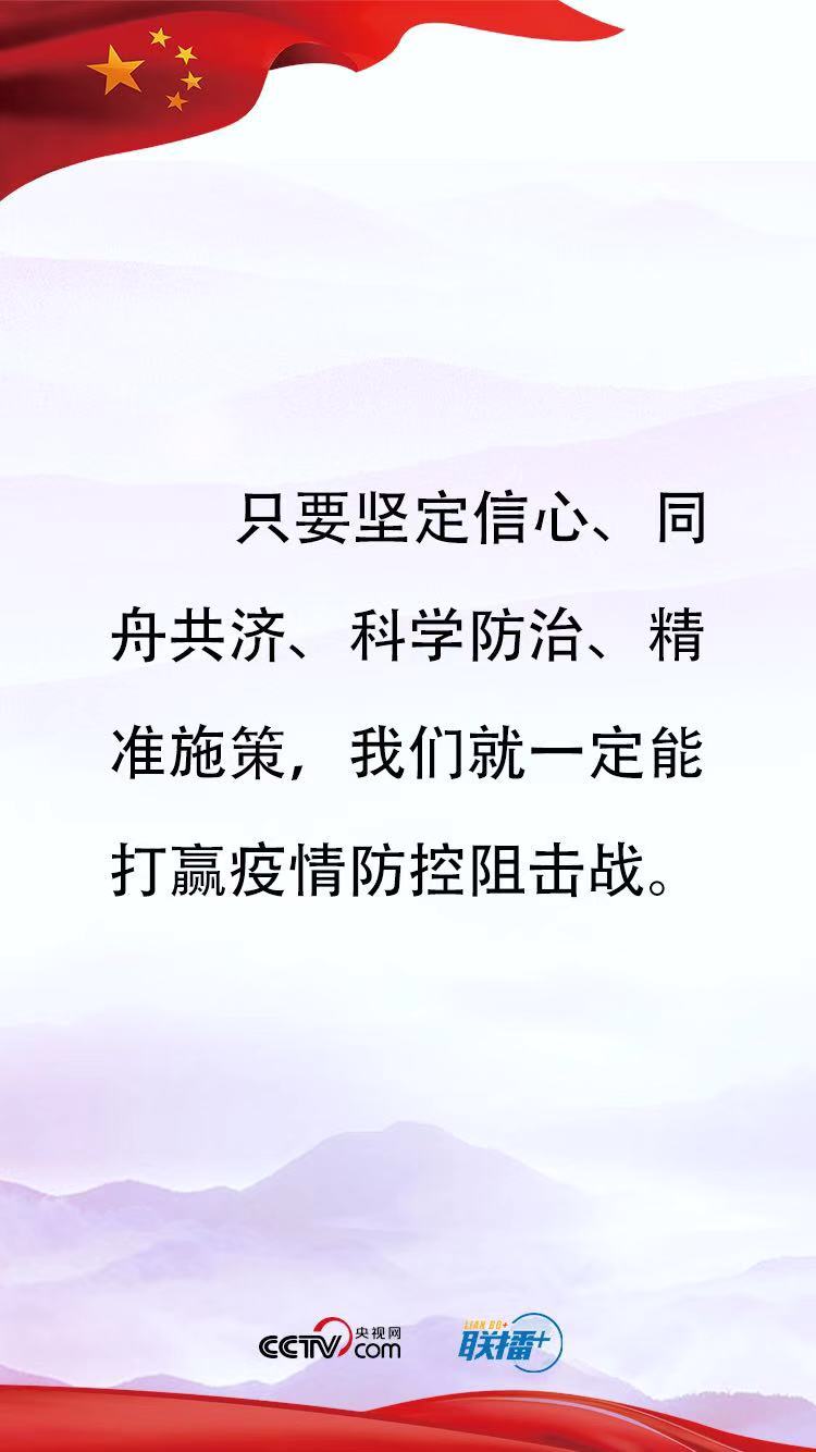 “全黨全軍全國各族人民都同你們站在一起,都是你們的堅強后盾。”危難時刻,習(xí)近平溫暖人心的話語,堅定著人們打贏疫情防控阻擊戰(zhàn)的信心和決心。央視網(wǎng)《聯(lián)播+》特此梳理,與您一起共克時艱。