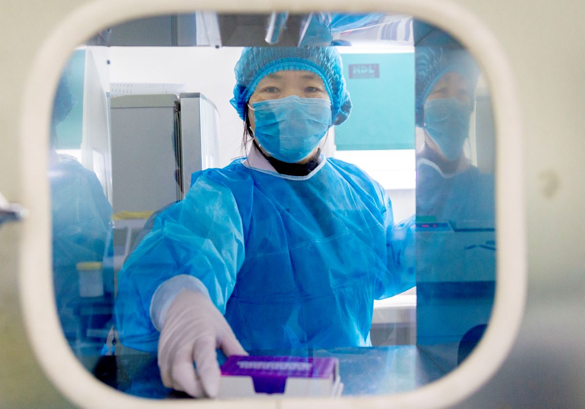 這個生物安全柜是一個空氣凈化負(fù)壓柜,可以保證病毒不會擴(kuò)散到生物柜外。在多次過濾和各種化學(xué)試劑的幫助下,病毒的外衣被逐漸剝開,露出核酸。核酸提取后便送往基因擴(kuò)增儀,通過觀察擴(kuò)增過程,從而確認(rèn)樣本中是否存在病毒。