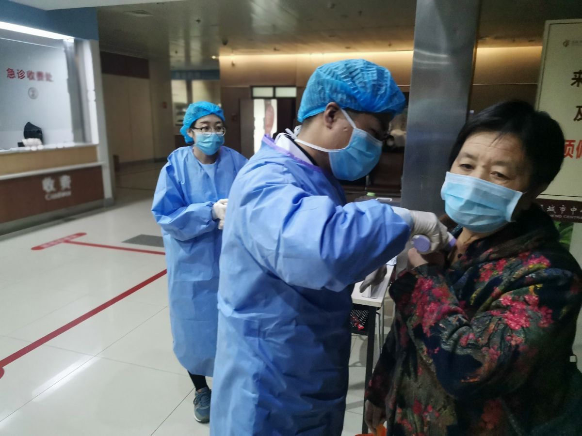 值班這天晚上,韓林和孫凡需要用體溫槍對所有進出人員進行體溫普查,并告知他們?nèi)绾握_佩戴口罩。當(dāng)患者體溫復(fù)查后仍然超過標(biāo)準(zhǔn),韓林就會引導(dǎo)患者前往發(fā)熱門診就診,孫凡則登記好詳細(xì)信息,并立刻對患者接觸區(qū)域進行消毒處理。