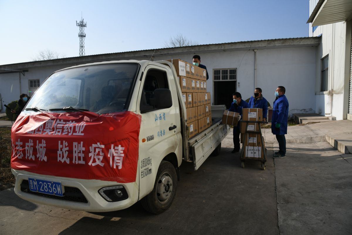 ▲2月4日,山西奧信藥業(yè)將價值4萬余元的3噸消毒液,捐贈給聞喜縣新型冠狀病毒感染的肺炎疫情防控指揮部。