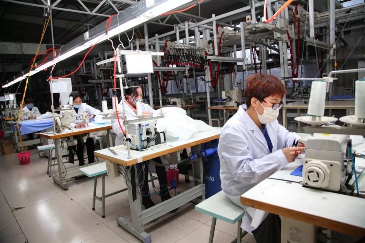 山西兵娟實業(yè)有限公司員工加班加點生產(chǎn)醫(yī)用防護(hù)服