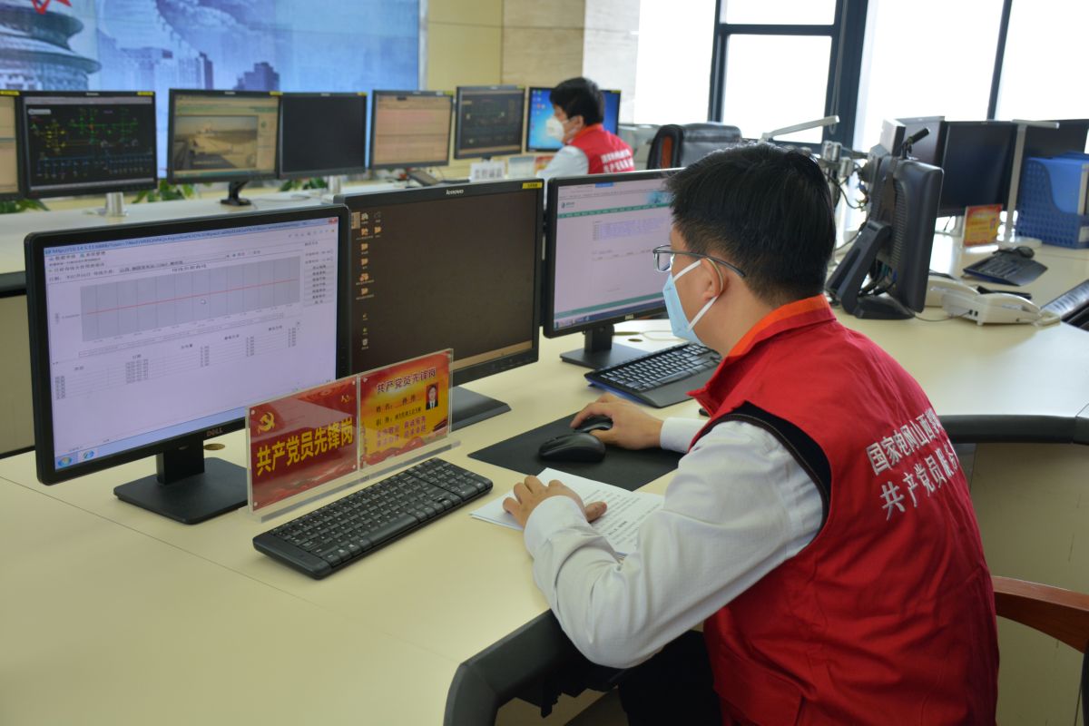 調(diào)控中心黨員先鋒崗成員在控制中心堅(jiān)守。 祁克寧 攝
