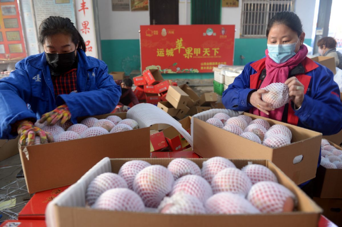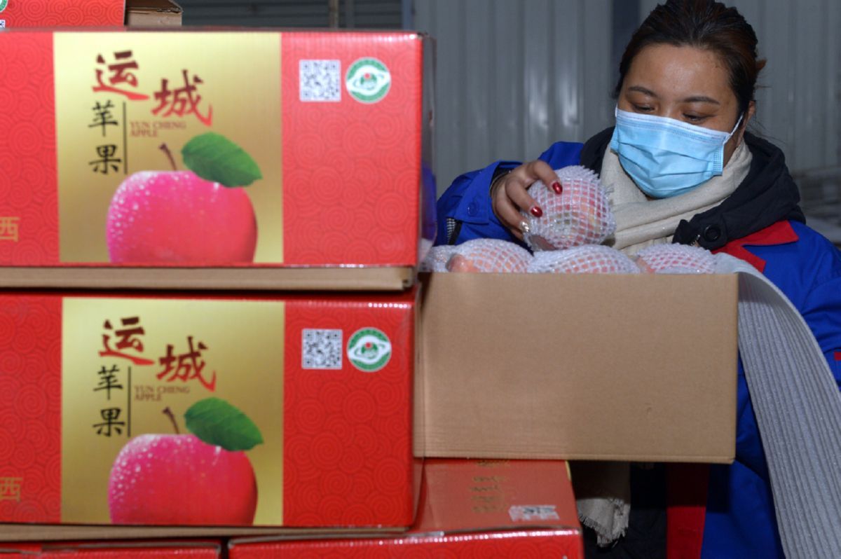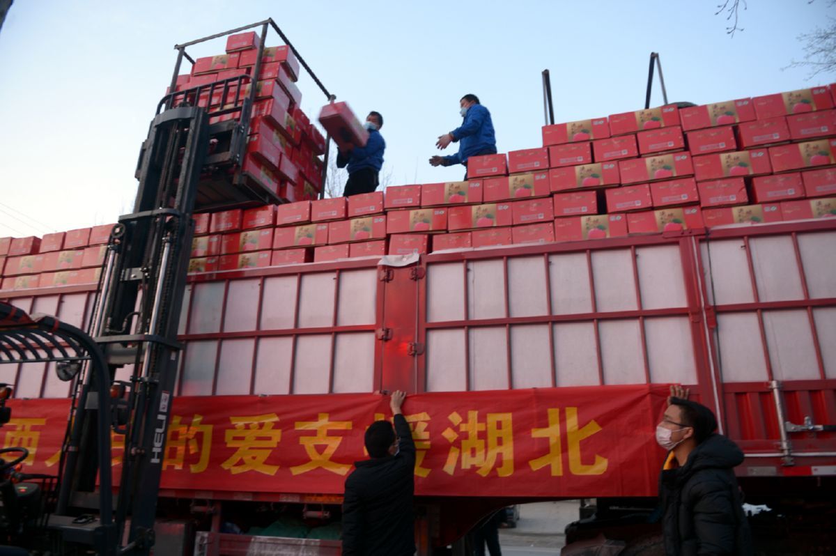 2月10日下午,由運城果農精心挑選捐贈的300噸紅富士蘋果,代表著全省3000多萬人民的心意,裝車發往湖北省。 本報記者 馮革才 攝
