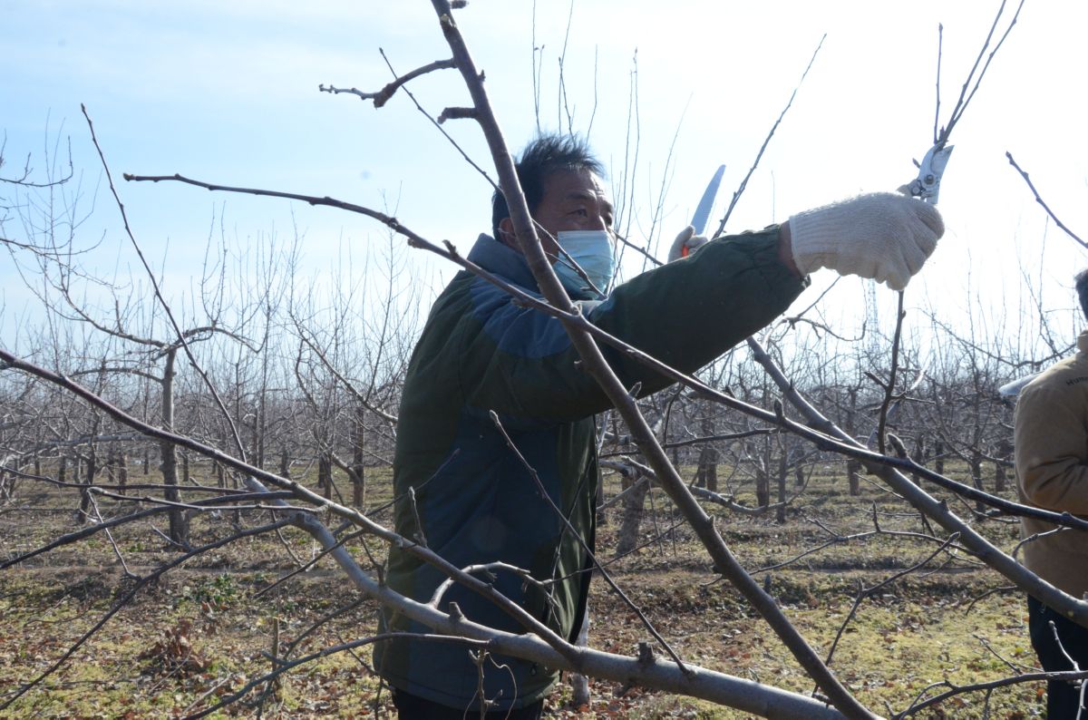 ▲果樹修剪隊的師傅正在給果樹剪枝 劉凱華 攝