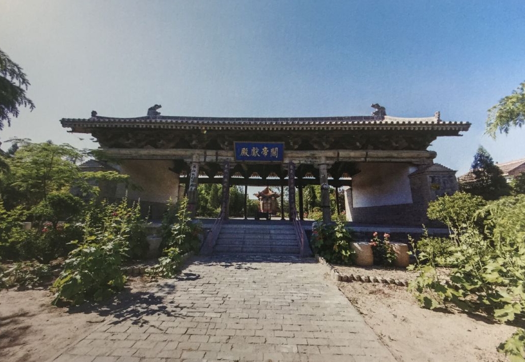 關(guān)帝廟創(chuàng)建年代不詳,現(xiàn)僅存元代獻殿一座。大殿坐北朝南,面寬五間,進深四椽,單檐懸山頂,無欄額,前檐施粗圓木通面額,額上施斗11朵為四鋪作單下昂,梁架結(jié)構(gòu)徹上露明造,其上施駝峰承接平梁,平梁上立脊瓜柱與叉手,四椽與平梁上皆施彩繪,與大殿同期,為四椽通達前后檐。