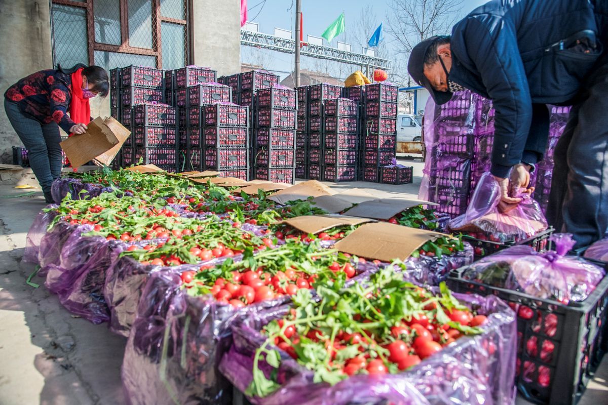 2月22日,鹽湖區大渠辦北孫塢村村民將圣女果裝箱,準備發往市場。 特約攝影 徐應杰 攝