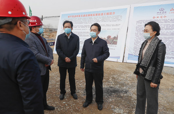 在山西建龍、際華3534和侯平高速聞喜互通連接線項目建設工地,朱鵬詳細了解企業復工復產和項目建設情況,查看疫情防控措施,叮囑企業和工程負責人在全力抓生產的同時,認真履行法人責任,嚴格落實防控措施,切實保障員工生命安全和身體健康。