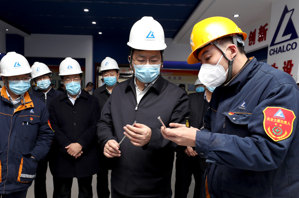 丁小強在中鋁山西新材料有限公司調研 記者 雷哲俠 攝