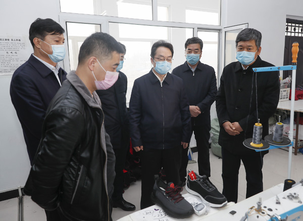 朱鵬深入平陸縣常興社區扶貧車間調研企業復工復產、項目建設、脫貧攻堅及疫情防控情況。 記者 閆鑫 攝