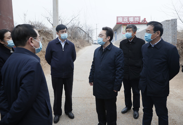 朱鵬深入平陸縣圣人澗鎮寨頭村調研疫情防控情況。 記者 閆鑫 攝