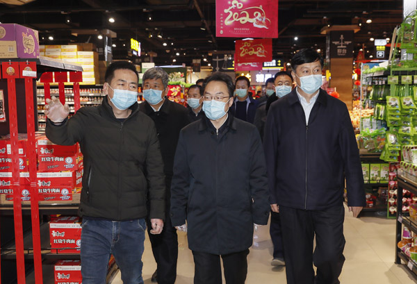 朱鵬深入平陸縣人人家超市調研疫情防控措施落實情況。記者 閆鑫 攝