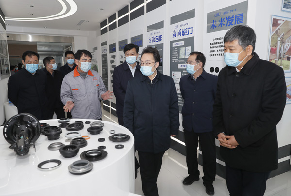 朱鵬深入山西新環橡塑制品有限公司調研企業復工復產及疫情防控情況。 記者 閆鑫 攝