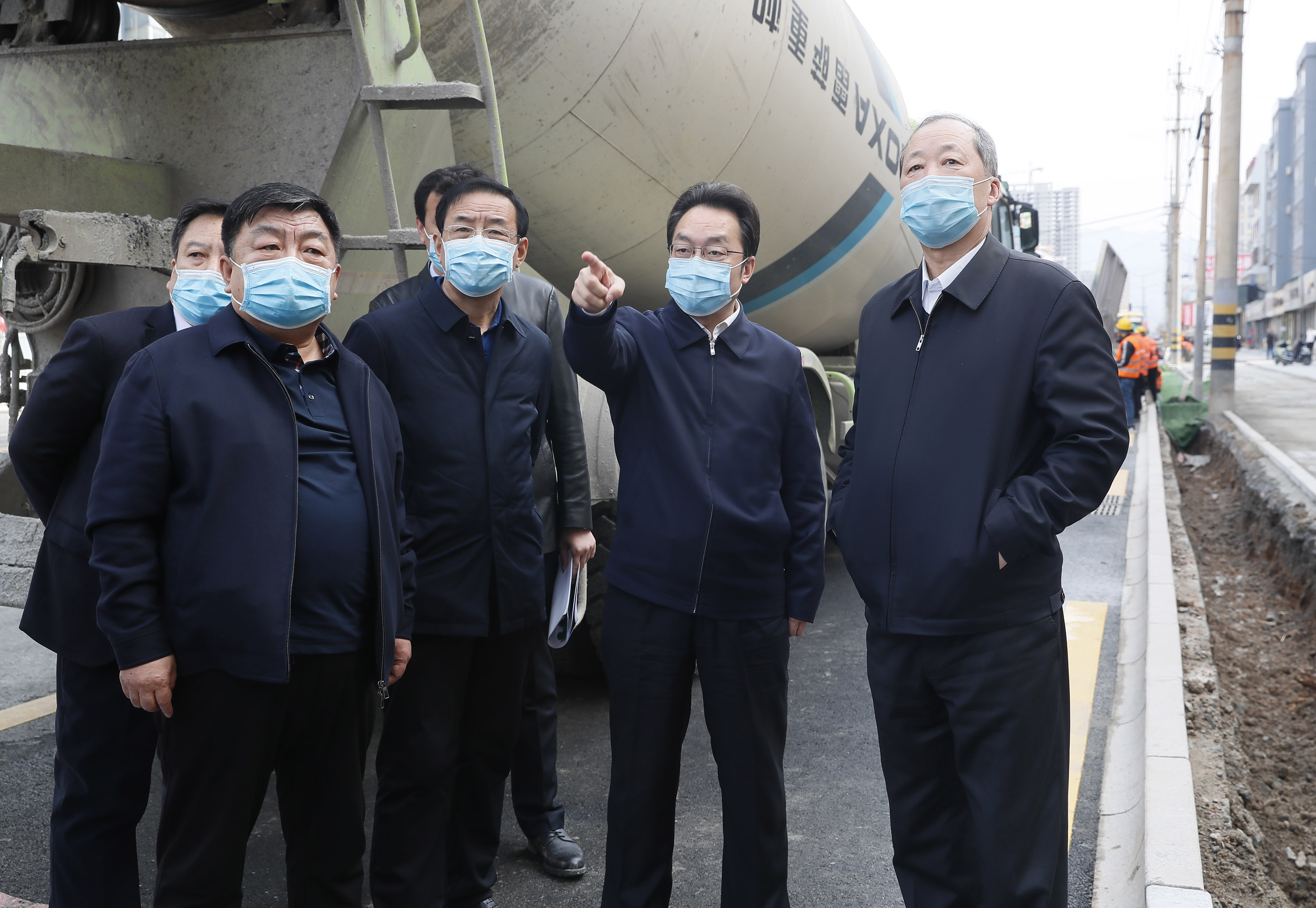市區解放路、圣惠路、學苑路項目建設現場,工人們正在加緊施工,工程機械設備正在忙碌作業。朱鵬實地查看疫情防控、復工情況和工程進展,詳細詢問項目建設中遇到的困難和問題。他強調,道路提升改造是改善城市形象的重要工程,要壓實責任、科學規劃,高標準做好雨污分流、三線入地、綠化苗木選擇、栽植和管護等工作,集中精力,倒排工期,確保按時完成各項建設任務。他叮囑項目負責人在全力抓生產的同時,認真履行法人責任,嚴格落實疫情防控措施,切實保障工人生命安全和身體健康。