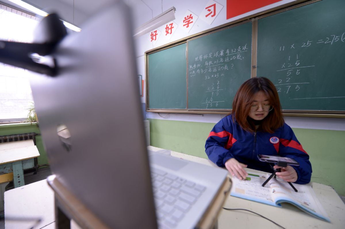 上午10時,藍海學(xué)校三(1)班數(shù)學(xué)老師馬儀彤提前來到課堂,調(diào)試好直播設(shè)備,通過手提電腦和手機直播的方式,提前給學(xué)生講解如何防疫的知識和注意事項,然后按照精心備好的課程給學(xué)生講課。該校除留校老師課堂網(wǎng)絡(luò)教學(xué)外,其他老師則在自家開展網(wǎng)絡(luò)教學(xué),然后將每天每堂課的內(nèi)容、效果以微信截圖和電話形式報告校方,接受管理和監(jiān)督。