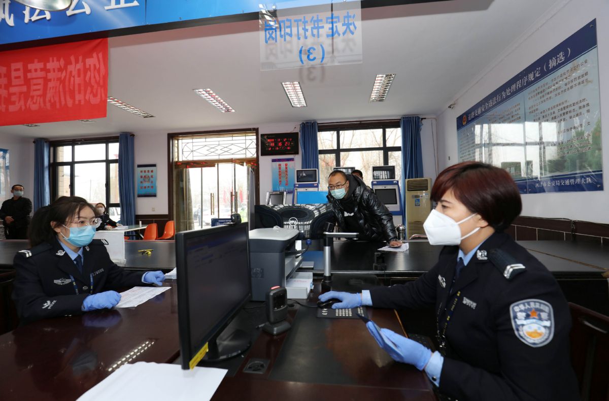 疫情防控期間,為全力保障企業復工復產,便利群眾生產生活,自3月2日起,河津市交警大隊違法處理大廳接受辦理交通違法處理預約業務。車主可通過電話或者本人現場預約的方式,來處理車輛的交通違法行為。車主辦理業務時需全程佩戴口罩,待民警進行體溫查驗和登記后,便可進行交通違法處理業務的辦理。 特約攝影 李泓曉