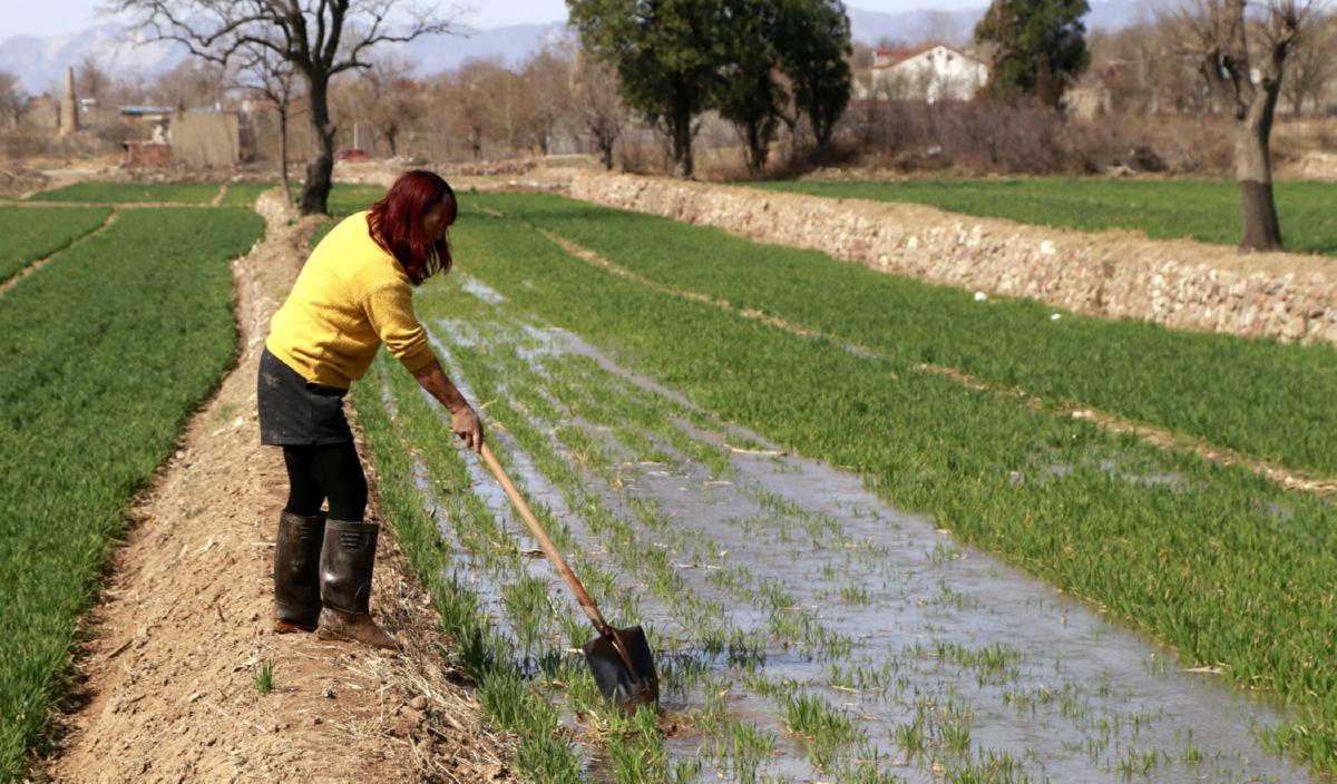 ▲3月3日,稷山縣化峪鎮四合莊自然村一村民在澆地。