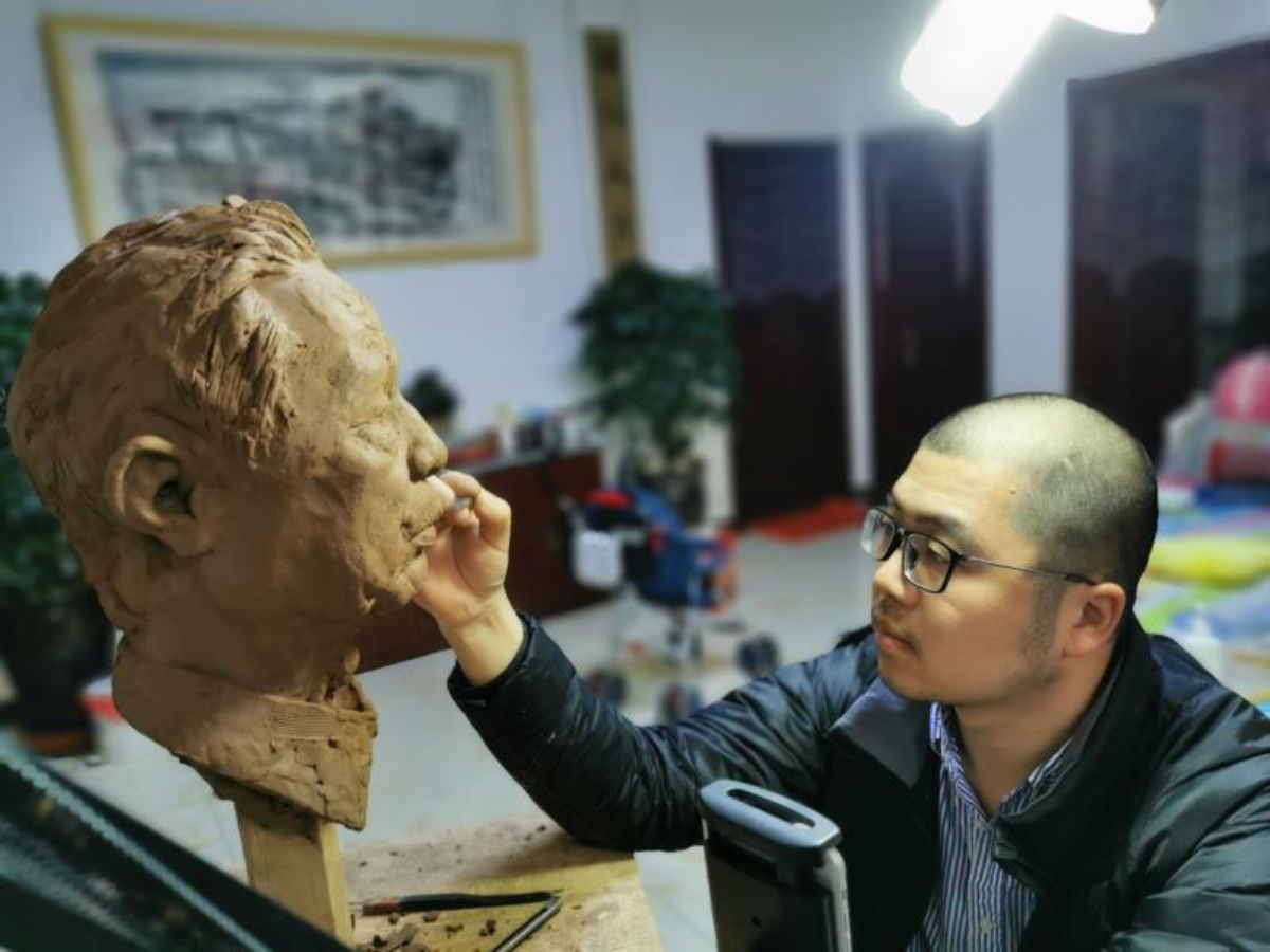 該作品為與其人等大泥塑。作者用家鄉運城的黃河膠泥進行創作,力求還原院士為國為民、鞠躬盡瘁的形象,致敬鐘南山院士。 (本通)