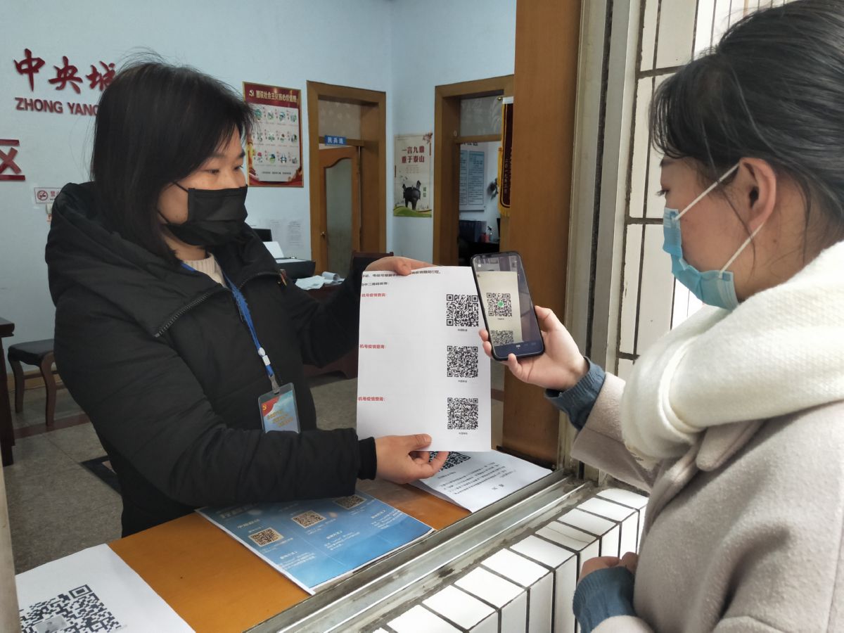 王小英引導(dǎo)復(fù)工復(fù)產(chǎn)人員掃描二維碼 崔萌 攝