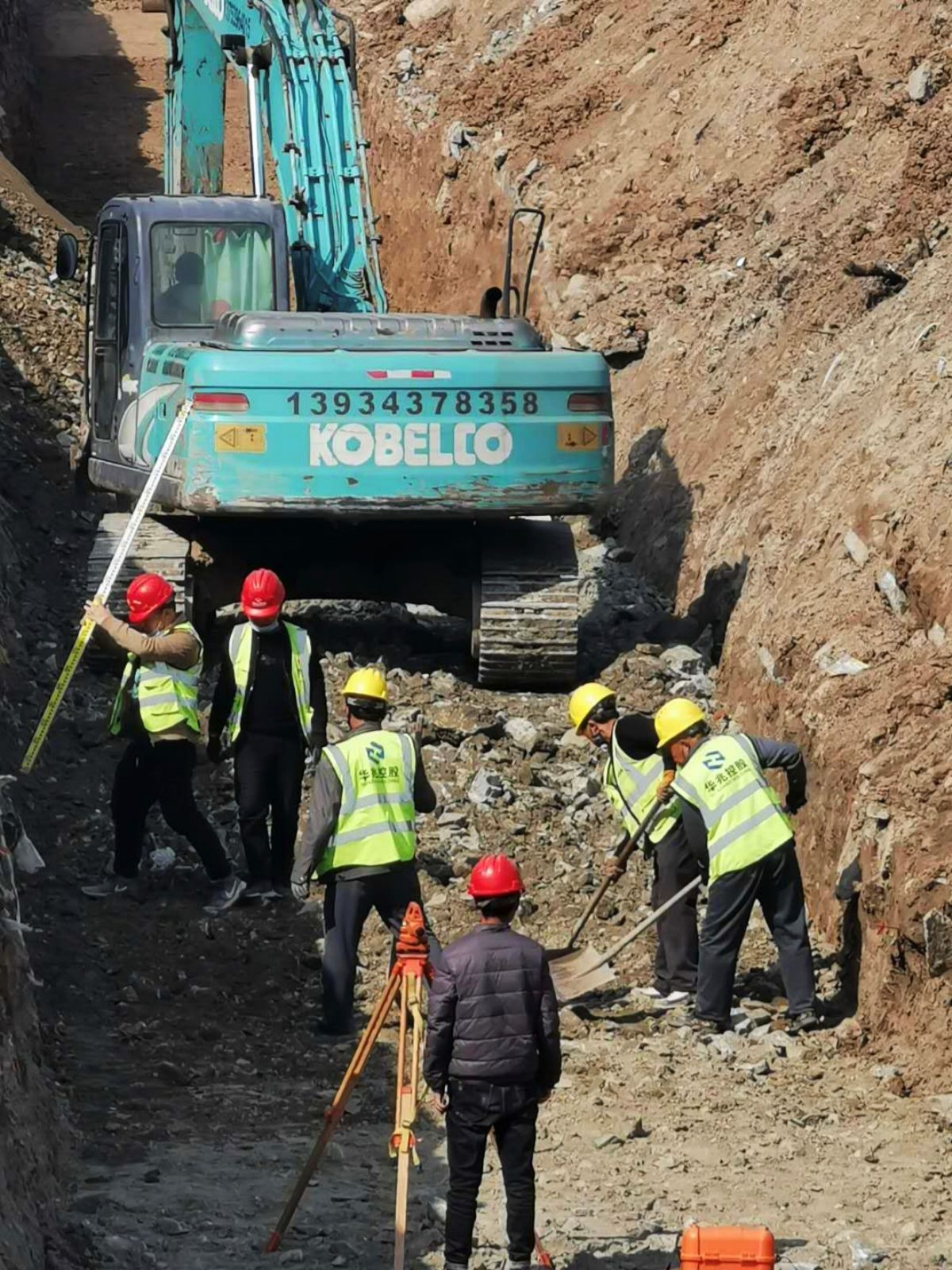 ▲工人在實施電力管溝工程建設 陶登肖 攝