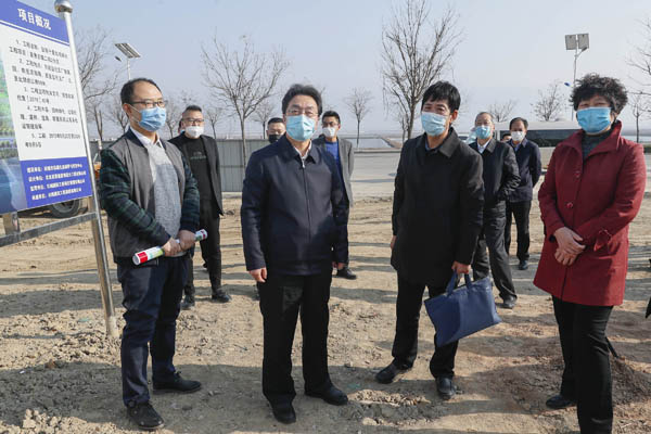 在城東污水處理廠二期擴建工程建設工地,佩戴口罩的工人們正在加緊施工。該工程于2019年5月29日開工,現已完成總工程量的85%,計劃2020年5月15日完工通水運行。朱鵬實地查看復工情況和工程進展,詳細詢問項目建設中遇到的問題。他指出,該工程是重點民生工程,是城市建設的基本保障。各級各有關部門要壓實責任、強化舉措、克服困難,進一步加大投資力度,提高建設標準,倒排工期,全力推進工程實施。他叮囑項目負責人在全力抓項目的同時,認真履行疫情防控和安全生產責任,切實保障施工人員生命安全和身體健康。