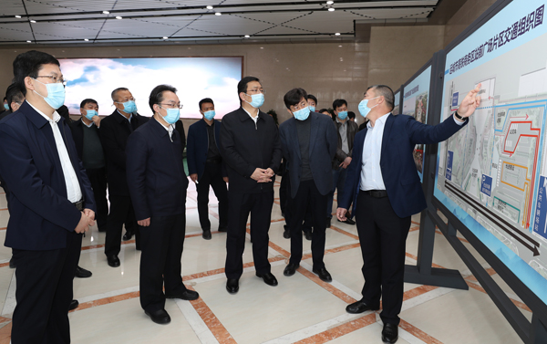 丁小強(qiáng)、朱鵬在高鐵商務(wù)區(qū)展覽館調(diào)研 記者 雷哲俠 攝