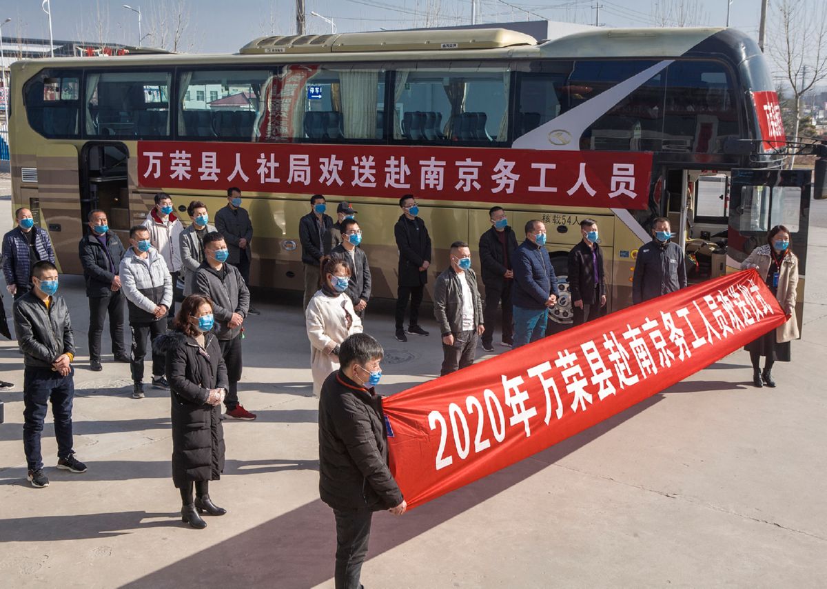 萬(wàn)榮縣赴南京務(wù)工人員返崗復(fù)工歡送儀式