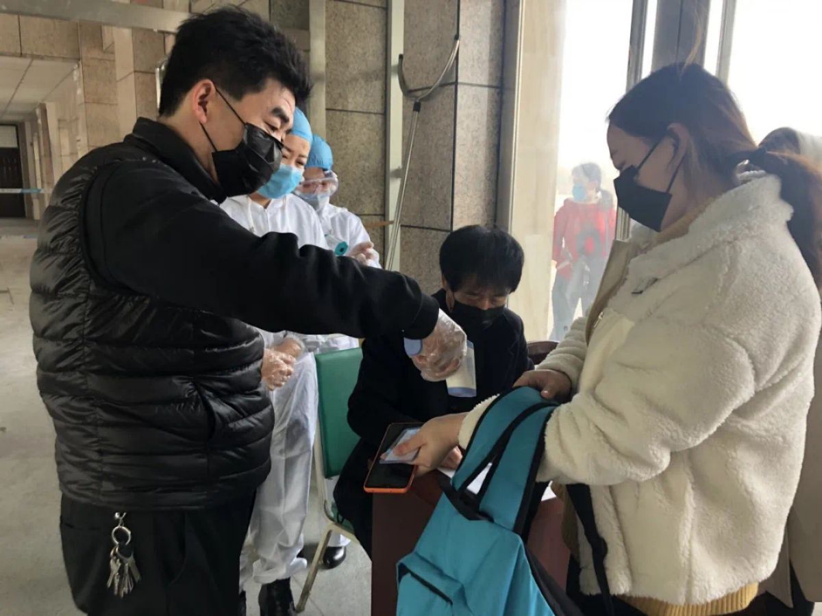 返崗出行前,為外出務(wù)工人員測(cè)量體溫