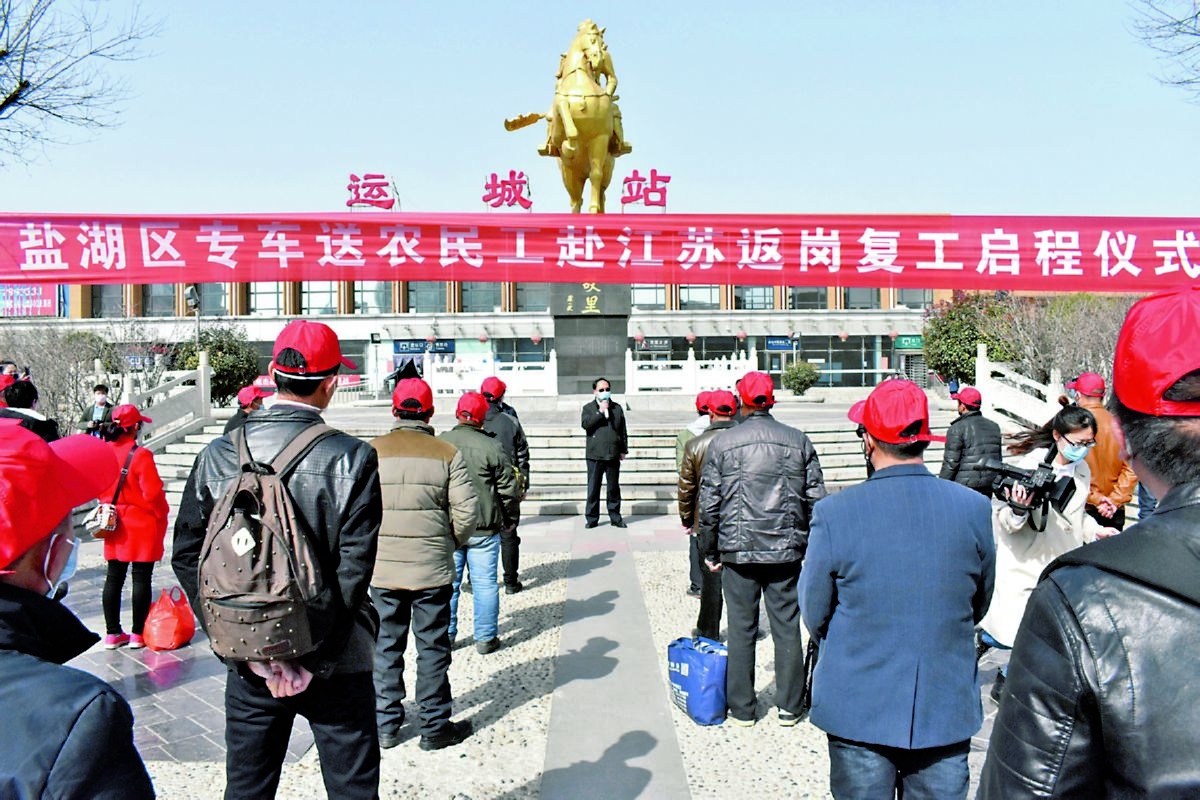 鹽湖區(qū)專車護(hù)送外出務(wù)工人員赴江蘇返崗復(fù)工