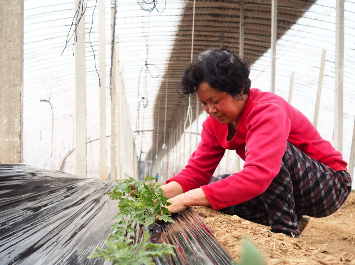 ▲近日,支北莊村貧困戶在大棚里種植西紅柿。 賈體錦 攝