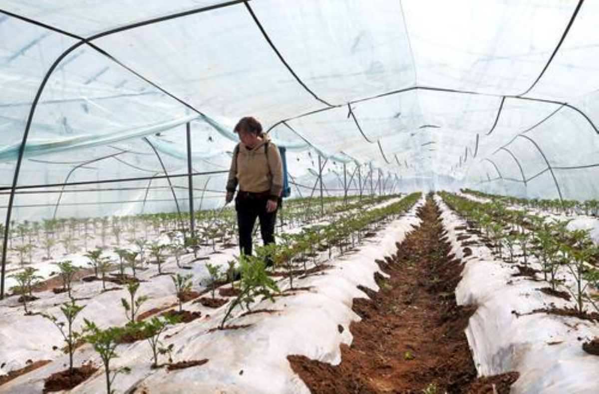 垣曲縣鼎諾合作社員工在大棚內為早熟西紅柿噴打營養素。 特約攝影 魯國林