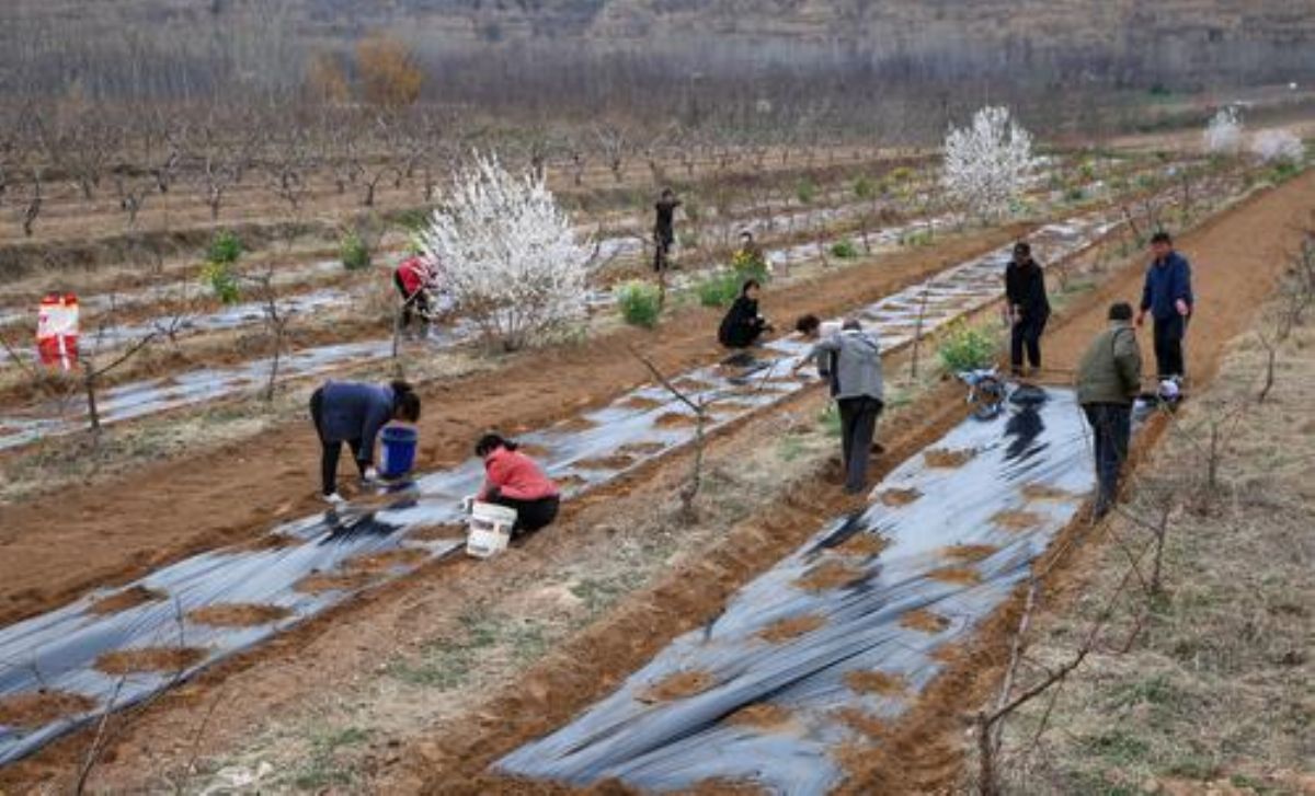 平陸縣張裕村村民在地里加緊覆膜播種 特約攝影 孫立功