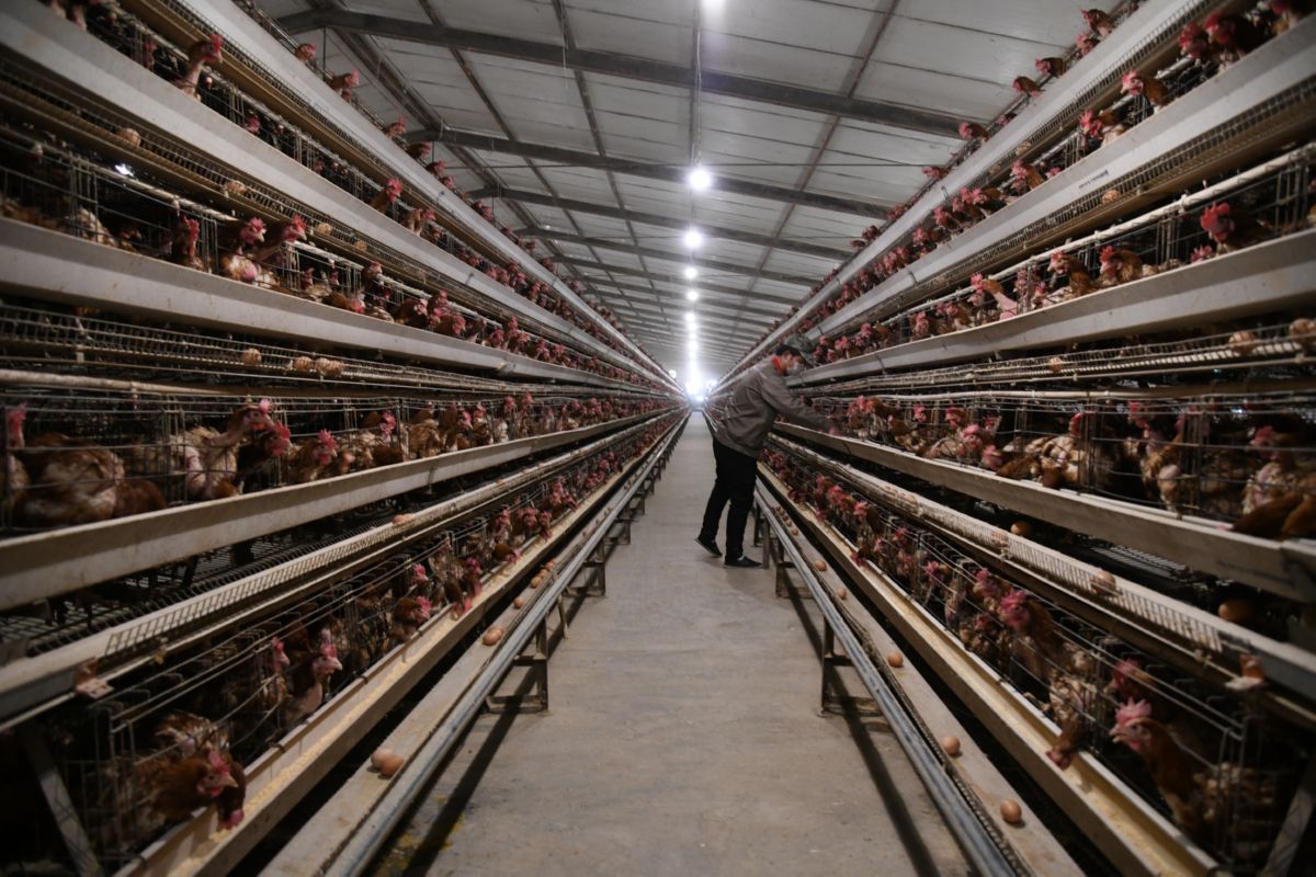 3月22日,聞喜縣后宮鄉保鑫養殖場技術人員在察看雞舍情況。