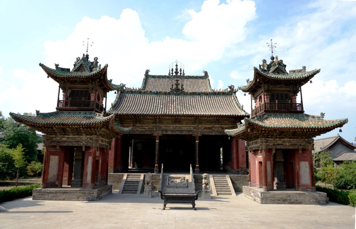 稷山縣稷王廟獻殿與鐘鼓樓,獻殿之北為后稷樓。