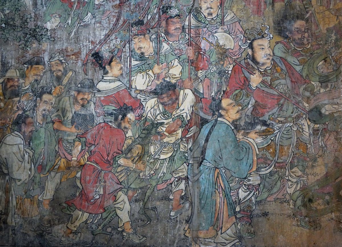 整個壁畫共繪有人神400余位,其創作者為翼城縣畫士常儒及其兩個兒子常耕、常耜,門徒張捆,絳州畫師陳圓和侄子陳文、門徒劉崇德。壁畫完成于明正德二年(1507)九月十五日。雖然是明代壁畫,但在線描方面繼承了晉南地區的元代壁畫風格,線條的粗細多變化,筆力雄健,爽暢自然。