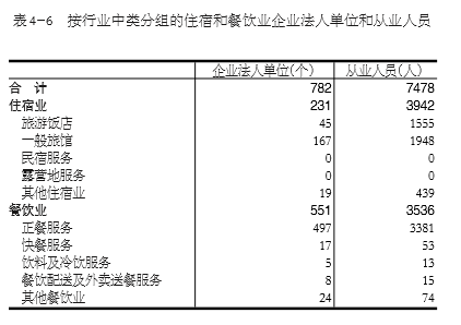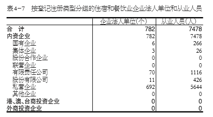 所有住宿和餐飲業企業法人單位均為內資企業(詳見表4-7)。