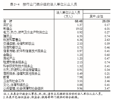 按地區分組的法人單位從業人員情況詳見表7-2。